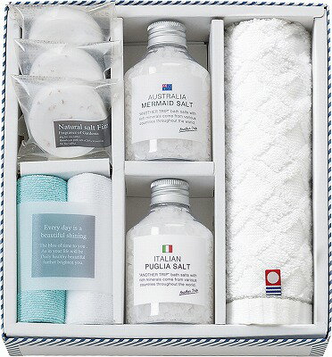 ●商品内容(商品サイズ):バスソルト(イタリアン)195g・バスソルト(オーストラリア)175g・ソルト・フィズ40g×3・マイクロファイバークロス250×250mm×2・今治ウォッシュタオル280×300mm●生産国:ITA・AUS・JPN・CHN●箱サイズ:箱210×200×60mm大自然の恵み