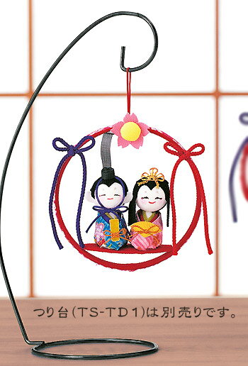 つるすタイプの雛人形キットです。丸い輪のなかにお殿様とお姫様が並んでいます。にこやかにほほ笑んでいる顔を見ると、ほのぼのします☆●出来上がりサイズ:約 直径10cm×奥行き3cm●つり台(TS-TD1)は別売りです。●制作時間:約60分●用意するもの:はさみ、ものさし、ボンド、両面テープ、目打ち、ほお紅、ペン(赤・黒)、カッターナイフ、わた(少量)◆生地の色・柄など使用材料は若干変わることがありま