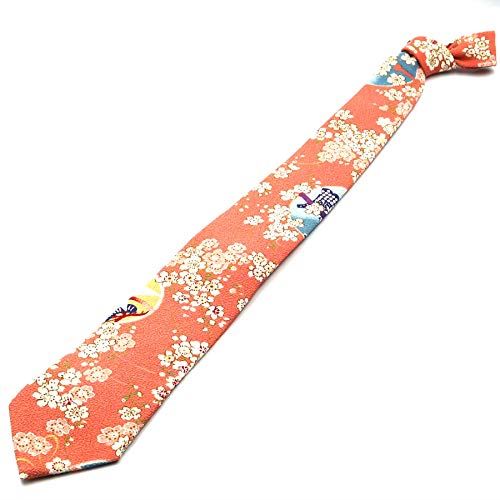 COCOLUCK ココラック 和柄 ちりめん ネクタイ カジュアル ビジネス 成人式 入学式 卒業式 父の日 プレゼント ギフト 洗える NANAseNANAche 長さ150cm 幅8cm 鈴桜桃