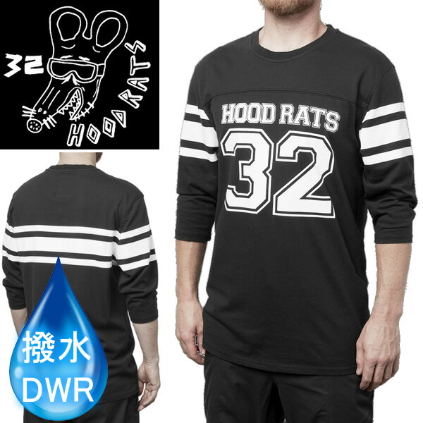 スノーボードウェア・ウエア HOODRATS 17-18モデル。 32のメンバーが中心となって作り上げたチーム『フードラット』。チームウェアとして高い人気です。 高レベルの撥水性能を誇る『REPEL(レペル)』加工した撥水シャツ。 4分の3スリーブ丈のフットボールジャージー。 なんと撥水処理加工済みのアパレルです。 天気のいい日のスノーボーディングやシーズンイン当初、春先などウェアまで着こむ必要が