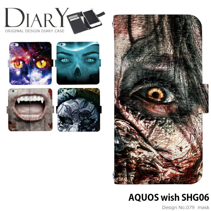 AQUOS wish SHG06 ケース 手帳型 アクオス ウィッシュ カバー スマホケース デザイン ベルトなし ハロウィン コスプレ マスク
