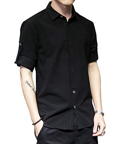 夏服 メンズ シャツ 【2020最新版】 七分袖 五分袖 カーディガン コート 無地 細身 和風 羽織 一つボタン シンプル トップス スリム カジュアル おしゃれ 小きいサイズ (ブラック 3XL)