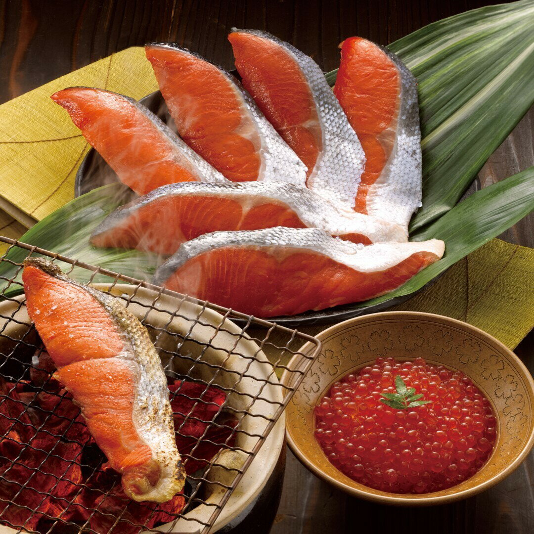 程よく脂ののった紅鮭をヒマラヤ岩塩で漬け込みました。岩塩が引き出したコクや旨味をご賞味ください。 一粒一粒に美味しさがギュッと詰まったいくら醤油漬けをセットにしてお届けします。 【内容量】 紅鮭のヒマラヤ岩塩漬け70g×7切、いくら醤油漬け50g×1個 【賞味期限】 出荷日より冷凍30日 【注意事項】 ※イメージ画像は料理例や盛付例となっており、実際のセット内容に含まれないものがございます。 ※販
