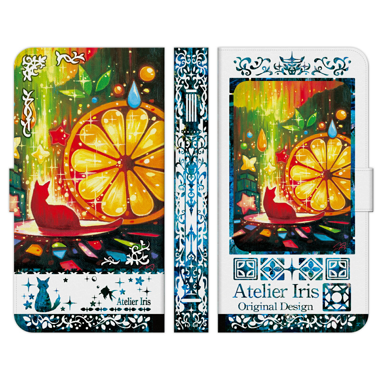 Galaxy Note10+ SC-01M SCV45 手帳型 スマホ ケース カバー オレンジな気分 白地 ブルー アトリエアイリス 猫 動物 かわいい 油絵 デザイン イラスト オレンジ みかん カラフル 楽しい ギャラクシー ノート プラス スマートフォン スマホケース スマートフォンケース