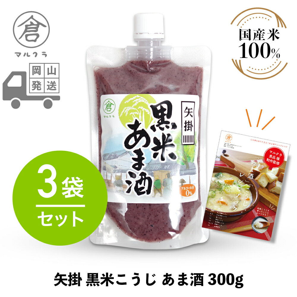 【 マルクラ 公認 レシピブック付 】 ご当地 甘酒 3袋[ 矢掛 黒米こうじ あま酒 300g×3袋セット ] こうじ甘酒 麹 米麹 糀 米こうじ 美容 健康 ダイエット 無添加 アルコール0 ノンアルコール 発酵食品 発酵飲料 玄米麹 岡山 広島 手作り まるくら ギフト プレゼント