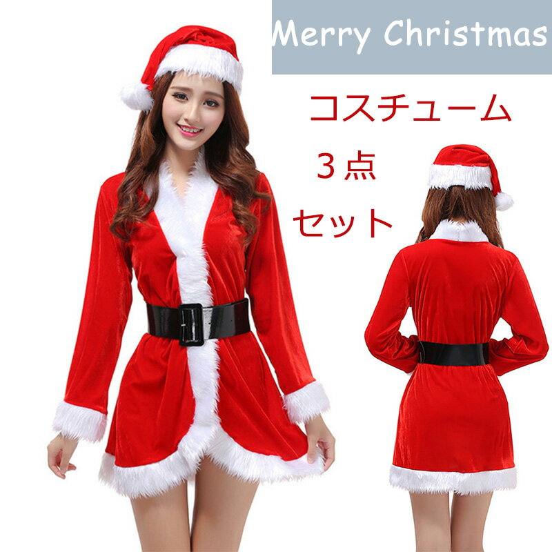 【送料無料】クリスマス コスプレ サンタコス サンタクロース コスチューム ワンピース サンタ 衣装 長袖 クリスマス衣装 コス セクシー レディース パーティー サンタコスプレ サンタコスチューム クリスマスコスプレ ワンピース 女の子用 赤 レッド 彼女 プレゼント 【3点セット】 コート+ベルト+帽子 【 高品質な生地 】 しっかりとした高級感のある生地を使用しています。質感が良く快適な着心