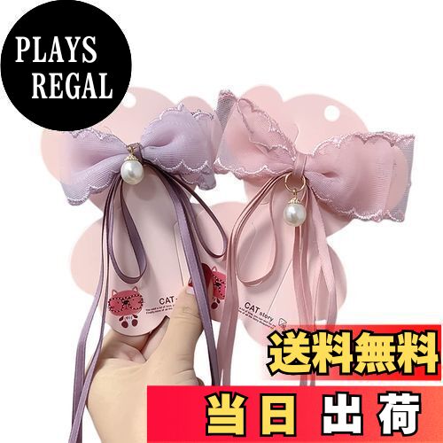 DFsucces レースリボン ヘアクリップ 女の子 髪飾り アクセサリー 成人式 卒業式 結婚式 パーティー 花火大会 リボン ヘアピン かわいい 2個セット (2個-ピンク+パープル)